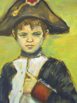 Era il giorno di Carnevale e lui teneva con ostinazione la mano sul petto olio su tela